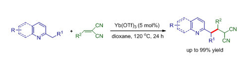 Yb(OTf)3 catalyzed addition of 2-substituted azaarenes to methylenemalononitriles (Image by HUANG Hanmin et al.)