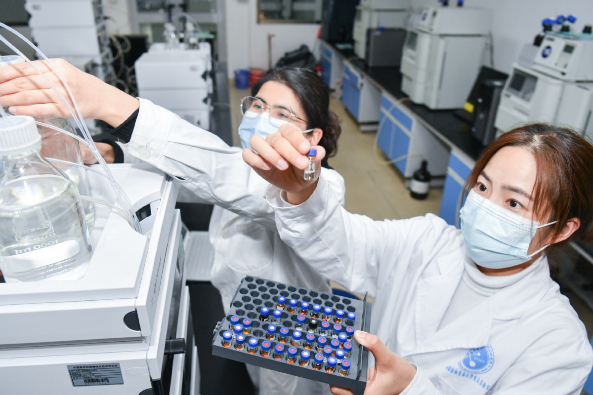 Researchers work in a lab at the biomedicine innovation and research center in Urumqi, Xinjiang Uygur autonomous region, on Nov 2. [Photo provided to China Daily]