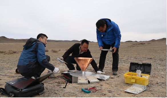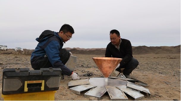 Researchers from the National Astronomical Observatories of the Chinese Academy of Sciences prepare for tests to detect the cosmic dawn global spectrum signal. (Photo by Tian Tengshan/for chinadaily.com.cn)