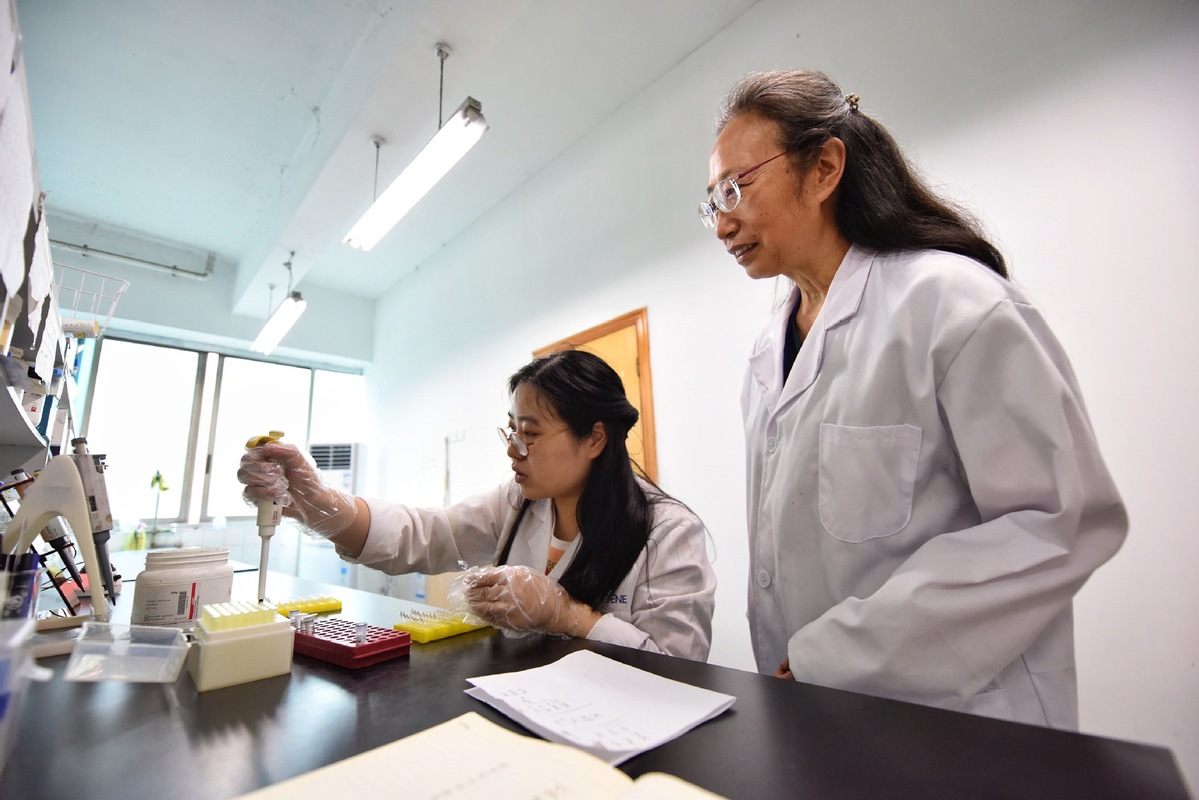 Researchers conduct experiments at the Chengdu Institute of Biology, the Chinese Academy of Sciences in Chengdu, Sichuan province, on May 21, 2021. [Photo/Xinhua]