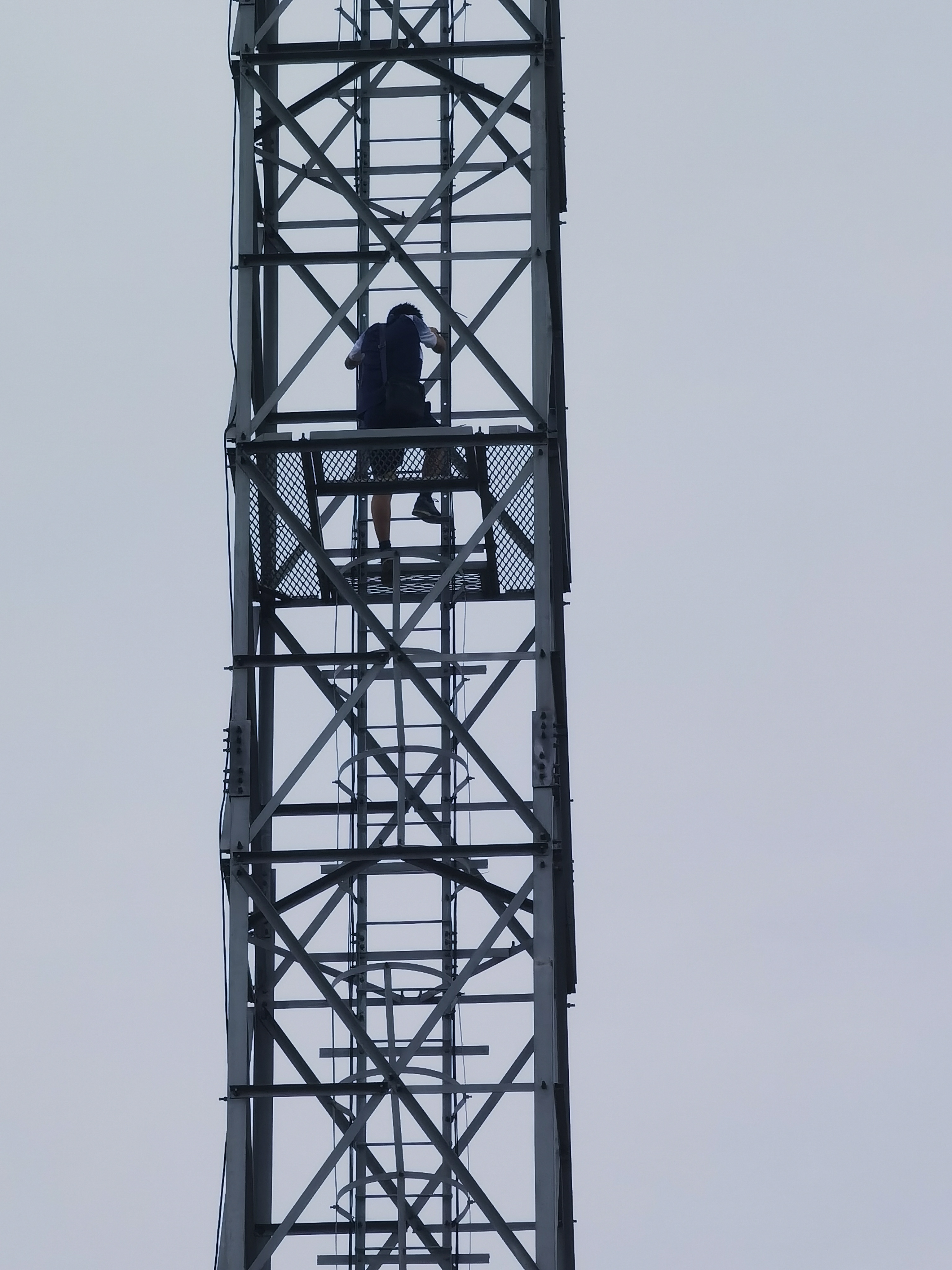 A researcher is instrumenting current detecting sensors on the top of the tower. (Image by WANG Yuan)