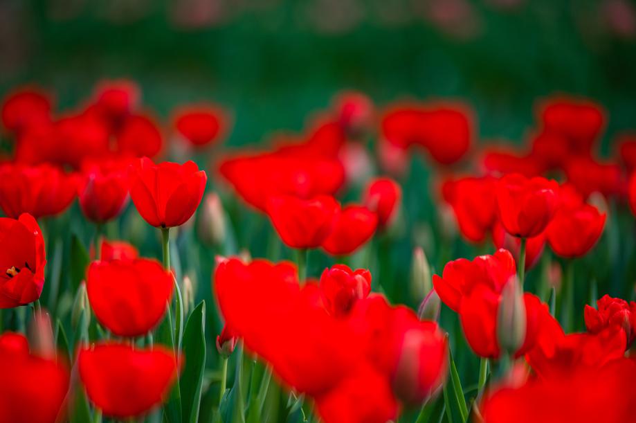 Nearly half the tulips are in full bloom now in an ocean of color.