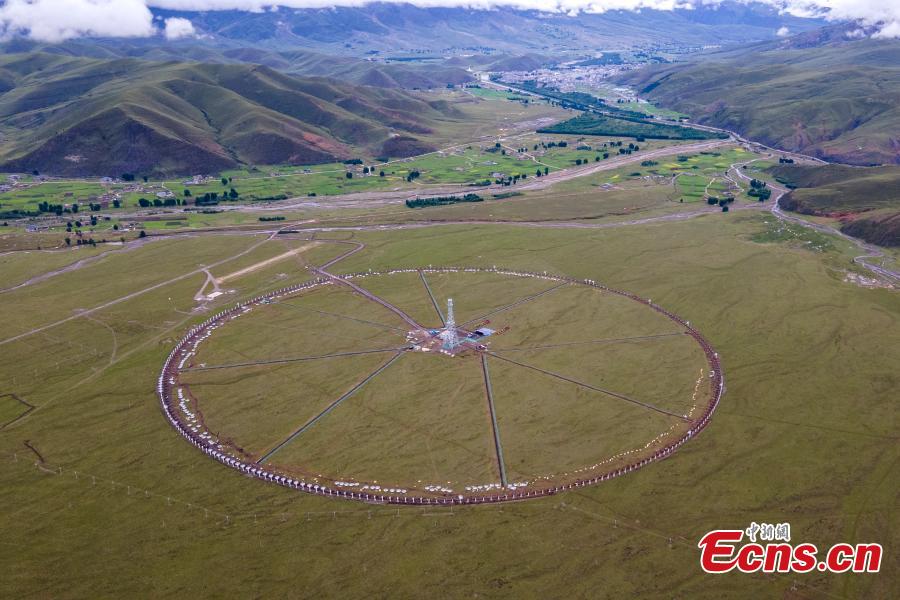 Aerial view shows the parabolic antennas in a circle in Daocheng county, Ganzi Ganzi Tibetan Autonomous Prefecture, southwest China's Sichuan Province, June 29, 2022. (Photo: China News Service/Liu Zhongyan)