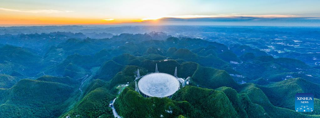 Aerial photo taken on July 25, 2022 shows China's Five-hundred-meter Aperture Spherical Radio Telescope (FAST) under maintenance in southwest China's Guizhou Province. Using FAST, or the "China Sky Eye," scientists have identified over 660 new pulsars. (Xinhua/Ou Dongqu)