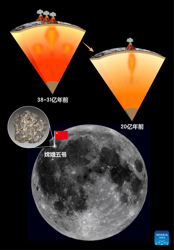 A Chinese group analyzed lunar samples returned by China's Chang'e-5 mission and proposed a new mechanism for how young volcanos took shape on the cooling moon 2 billion years ago.