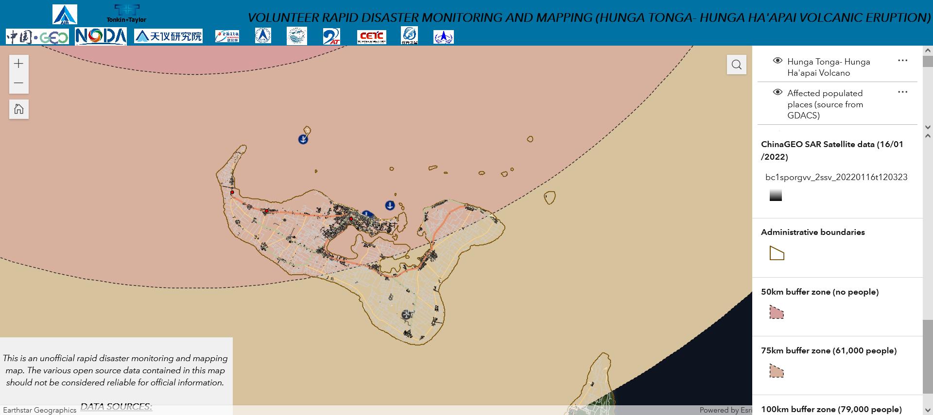 Fig. 1. Volunteer Rapid Disaster Monitoring and Mapping (Hunga Tonga-Hunga Ha'apai Volcanic Eruption) (Image from VoRDM).