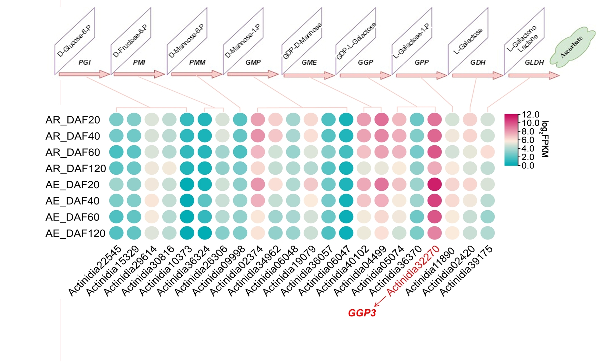 In addition, RNA-Seq, transient transformation, transgenic and gene editing were performed on kiwifruit with a high AsA content (six to ten-fold that of commercial kiwifruit) to uncover AceGGP3, a key gene for AsA synthesis in Actinidia eriantha (A. eriantha).
