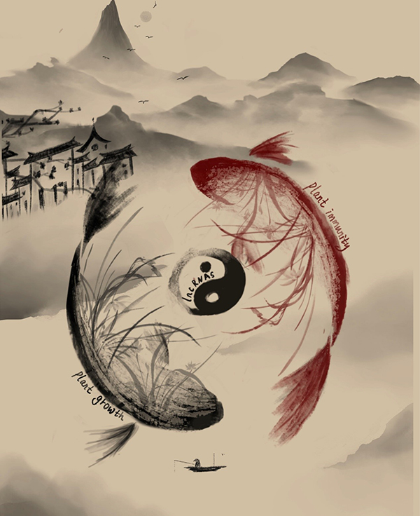 The Yin-Yang fish shows the fine-turning mechanism of lncRNA on plant immunity and growth balance. The black fish represents the growth of plants and the red fish represents the immunity responses of plants. (Image by IOZ)