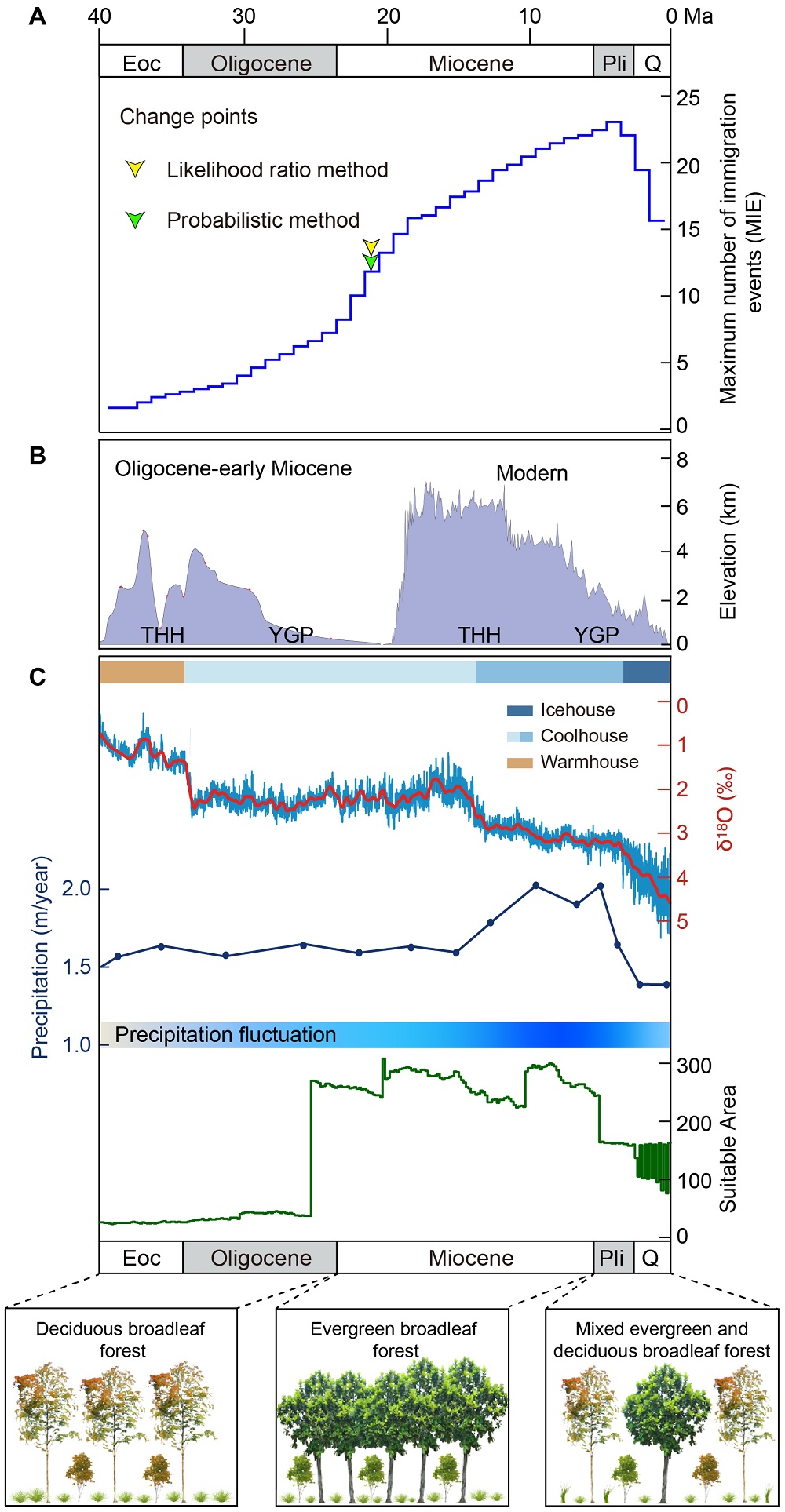 Fig. 2 Colonization dynamics of subtropical East Asian caves in relation to paleogeoclimate and vegetation changes (Image by IBCAS)