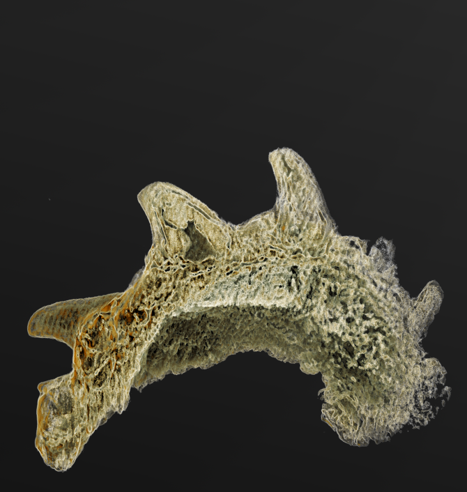 The tooth spirals (or whorls) of Qianodus turned out to be one of the least common fossils recovered from the site. They are small elements that rarely reach 2.5 mm and as such had to be studied under magnification with visible light and X-ray radiation.
