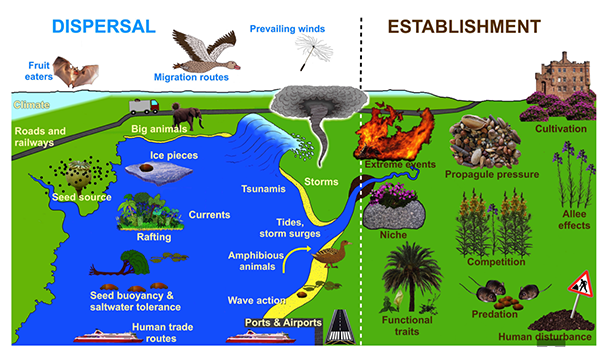 In addition, the relationships among factors that influence establishment should be studied to determine their relative importance. Furthermore, differences in mechanisms of establishment after LDD should be compared across both geological (millions of years) and recent (Anthropocene) time scales.