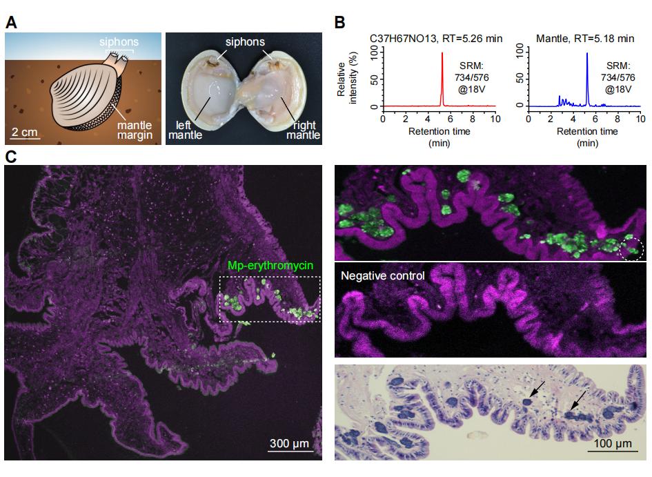 "We also documented erythromycin production in a related species, Meretrix lyrate, which suggests that the antibiotic may be more widely produced by marine invertebrates," said YUE Xin, first author of the study.