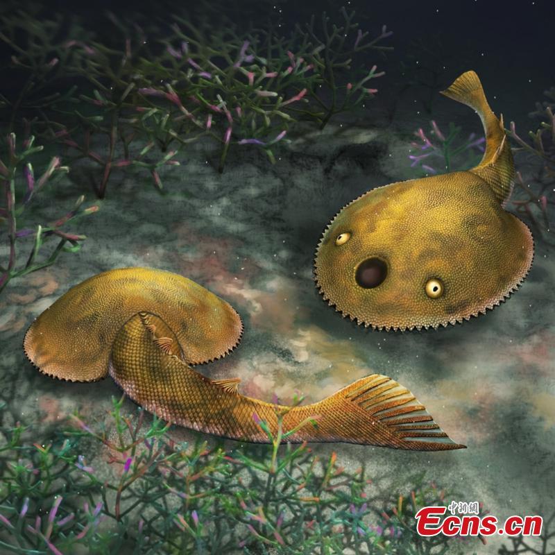Life reconstructions of galeaspid species with "nine tails" discovered in south China's Guangxi Zhuang Autonomous Region. (Photo provided to China News Service)