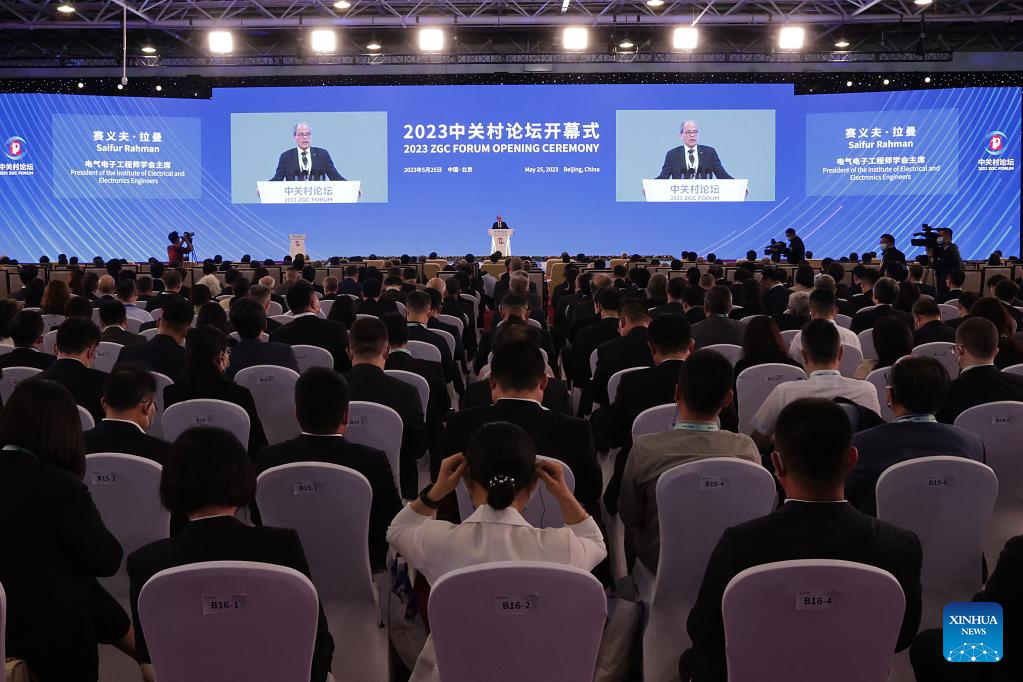 Themed "Open Cooperation for a Shared Future," the 2023 Zhongguancun Forum is jointly hosted by the Ministry of Science and Technology, the National Development and Reform Commission, the Ministry of Industry and Information Technology, the State-owned Assets Supervision and Administration Commission of the State Council, the Chinese Academy of Sciences, the Chinese Academy of Engineering, the China Association for Science and Technology, and the municipal government of Beijing. (Xinhua/Zhang Yuwei)