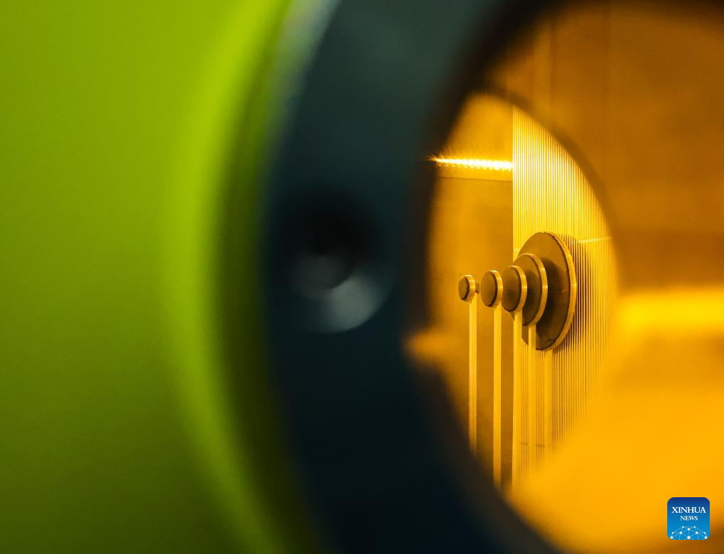 A researcher walks out of the control area of the very small angle neutron scattering (VSANS) of China Spallation Neutron Source (CSNS) in Dongguan, south China's Guangdong Province, July 18, 2023. (Xinhua/Liu Dawei)