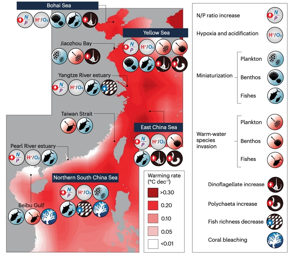 Wang Fan, a researcher at the institute and first author of the paper, said that their research integrated physical, biogeochemical, and biological findings and analyzed the changes in the seas, such as temperature rise, heat waves, circulation and more.