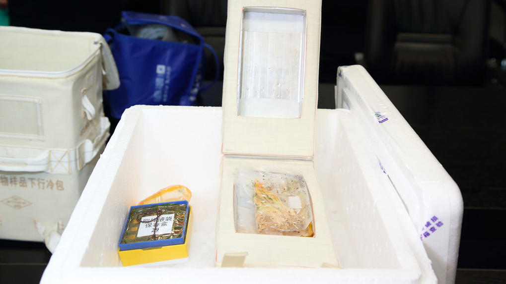 A box of cell and tissue culture module retrieved from the China Space Station is packed for delivery, June 4, 2023. /CMG
