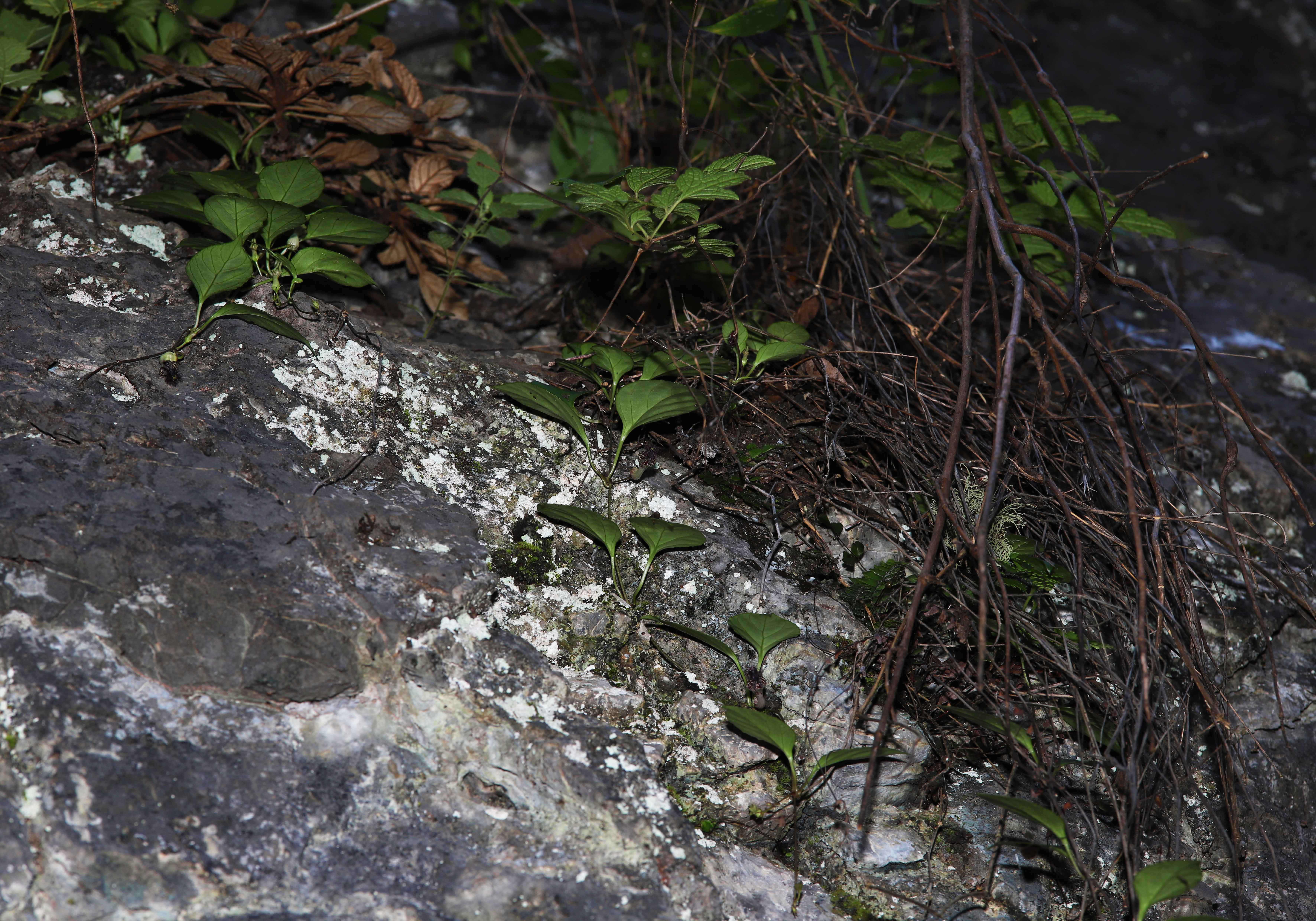Throughout the whole expedition, only one population of Ceropegia eshanensis was found, sporadically distributed in semi-humid evergreen broadleaf forest and twining around branches in the thickets near Fawu Village in Eshan. Its habitat is inevitably disturbed by local villagers.