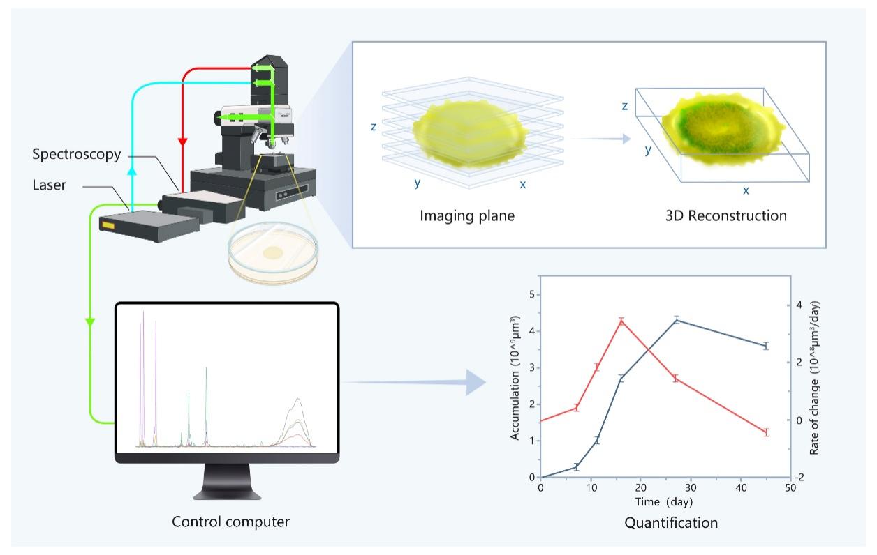 To demonstrate the potential of this technique, Prof. ZHANG's team constructed Raman 3D quantitative in-situ analysis method for microbial communities on solid substrates. It combined optical visualization with Raman quantitative analysis, and could quantitatively characterize the microbial metabolic processes in both temporal and spatial dimensions non-destructively.
