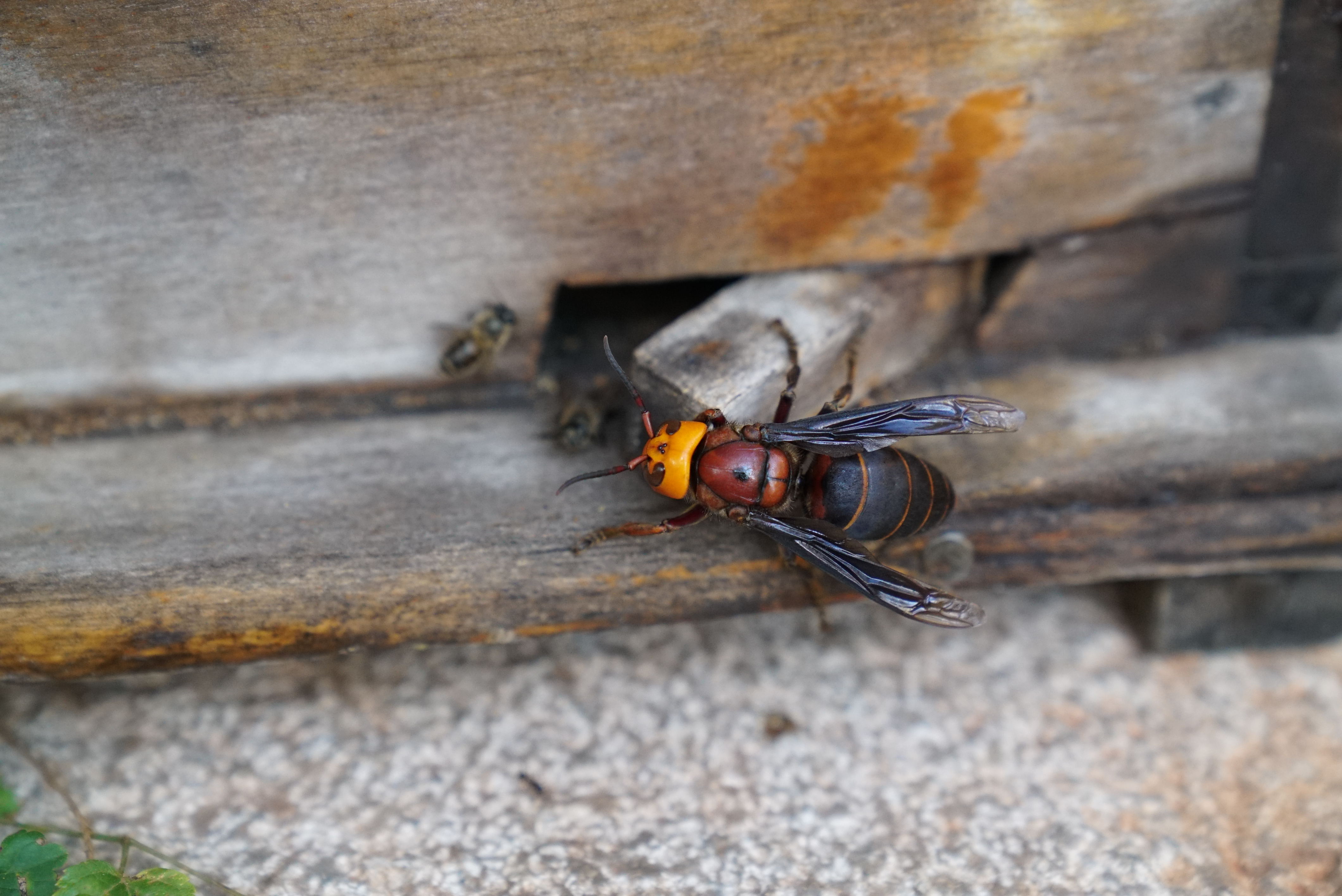 Fig. 2 A hornet is predating on honeybees. (Image by DONG Shihao)