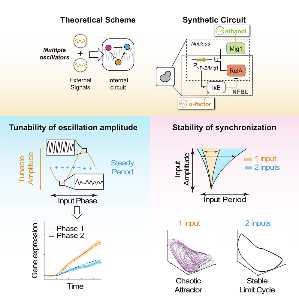 Now, a joint research team from the Shenzhen Institute of Advanced Technology (SIAT) of the Chinese Academy of Sciences and the Niels Bohr Institute at the University of Copenhagen has constructed a synthetic oscillatory system in yeast that can respond to dual oscillatory signals. By tightly integrating the experiment and mathematical modeling, the researchers have revealed the cooperative effect of multiple oscillatory signals and the unique phase regulation phenomenon associated with them. These findings suggest a novel path for controlling oscillatory dynamics in both natural and synthetic biological systems.