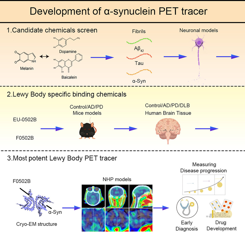 The discovery of F0502B represents a promising lead compound for imaging α-synuclein inclusions in synucleinopathies (Image by YE Keqiang)