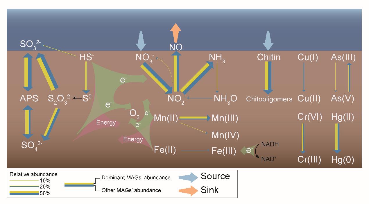 Fig. 1 Overview of the metabolic functions of dominant microbial components in deep-sea ferromanganese nodule sediment fields (Image by IOCAS)