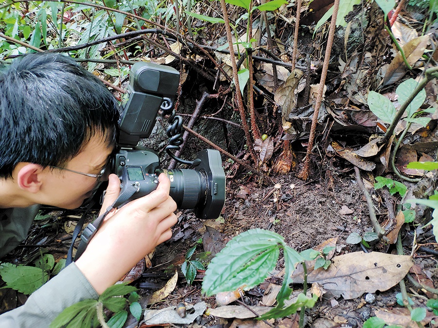 Ya Jidong takes photos of Thismia malipoensis in the nature reserve in 2019. CHINA DAILY