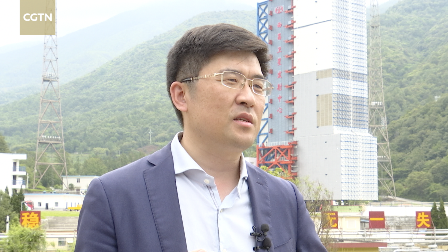 Zhang Yonghe, SVOMs' Chinese project manager, talks with CGTN at the Xichang Satellite Launch Center in southwest China's Sichuan Province, June 22, 2024. /CGTN
