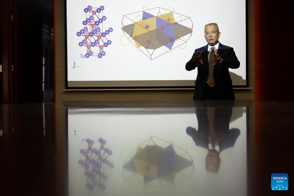 Fang Zhong briefs on research achievements at the Institute of Physics, Chinese Academy of Sciences in Beijing, capital of China, June 19, 2024. (Xinhua/Jin Liwang)