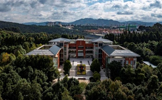 Aerial photo taken on Oct. 20, 2021 shows an outside view of the Germplasm Bank of Wild Species in Kunming, southwest China's Yunnan Province. (Xinhua/Jiang Wenyao)
