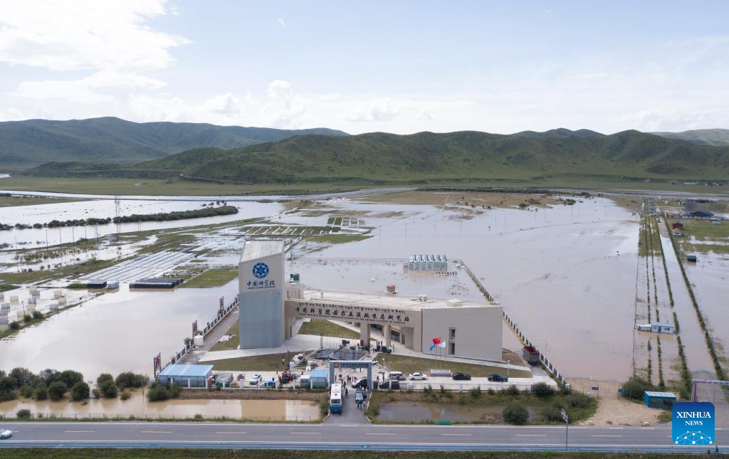 A drone photo taken on July 25, 2024, shows the Zoige Wetland Ecology Research Station under the Chinese Academy of Sciences (CAS) in the Aba Tibetan and Qiang Autonomous Prefecture, southwest China's Sichuan Province. (Xinhua/Jin Liwang)