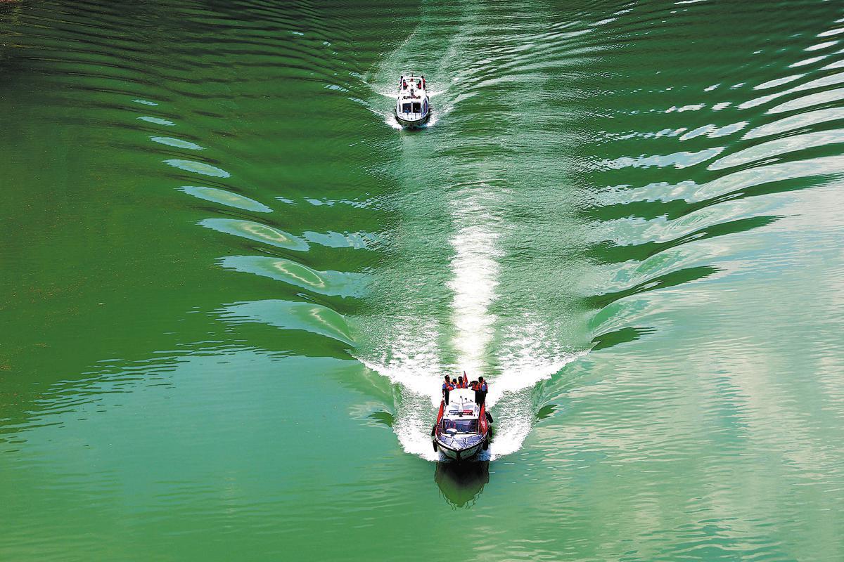 Fishery officers patrol the Apeng River. YANG MIN/FOR CHINA DAILY
