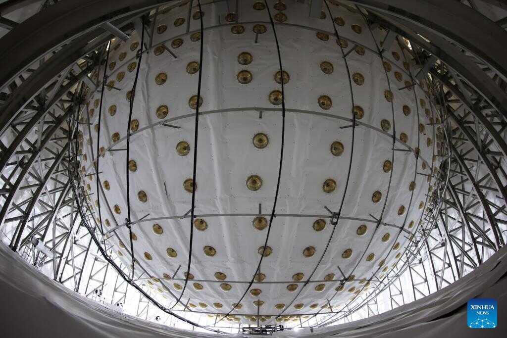 This photo taken on Dec. 17, 2024 shows the central detector of the Jiangmen Underground Neutrino Observatory (JUNO) in Jiangmen, south China's Guangdong Province. (Xinhua/Jin Liwang)