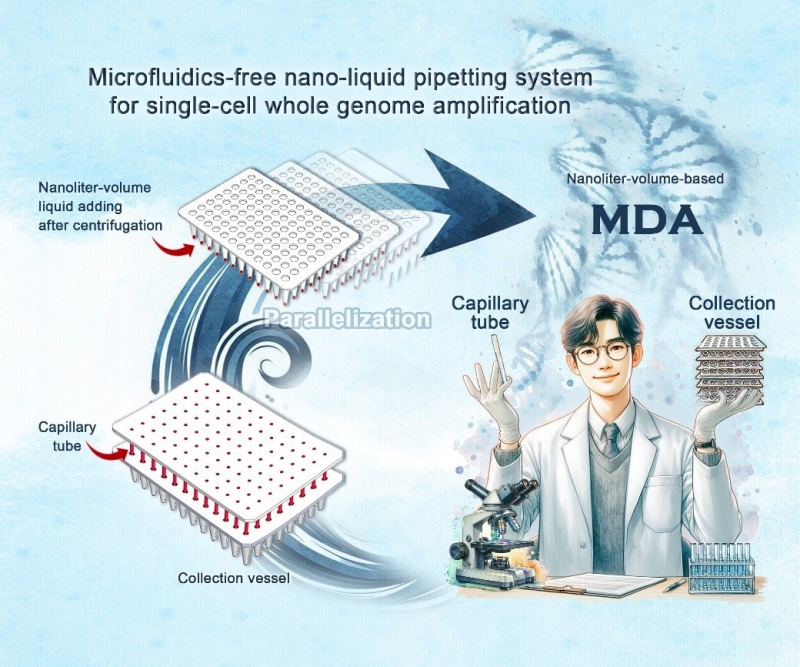 Simplified nanoliter liquid manipulation for high-throughput single-cell whole-genome amplification (Image by LIU Yang)