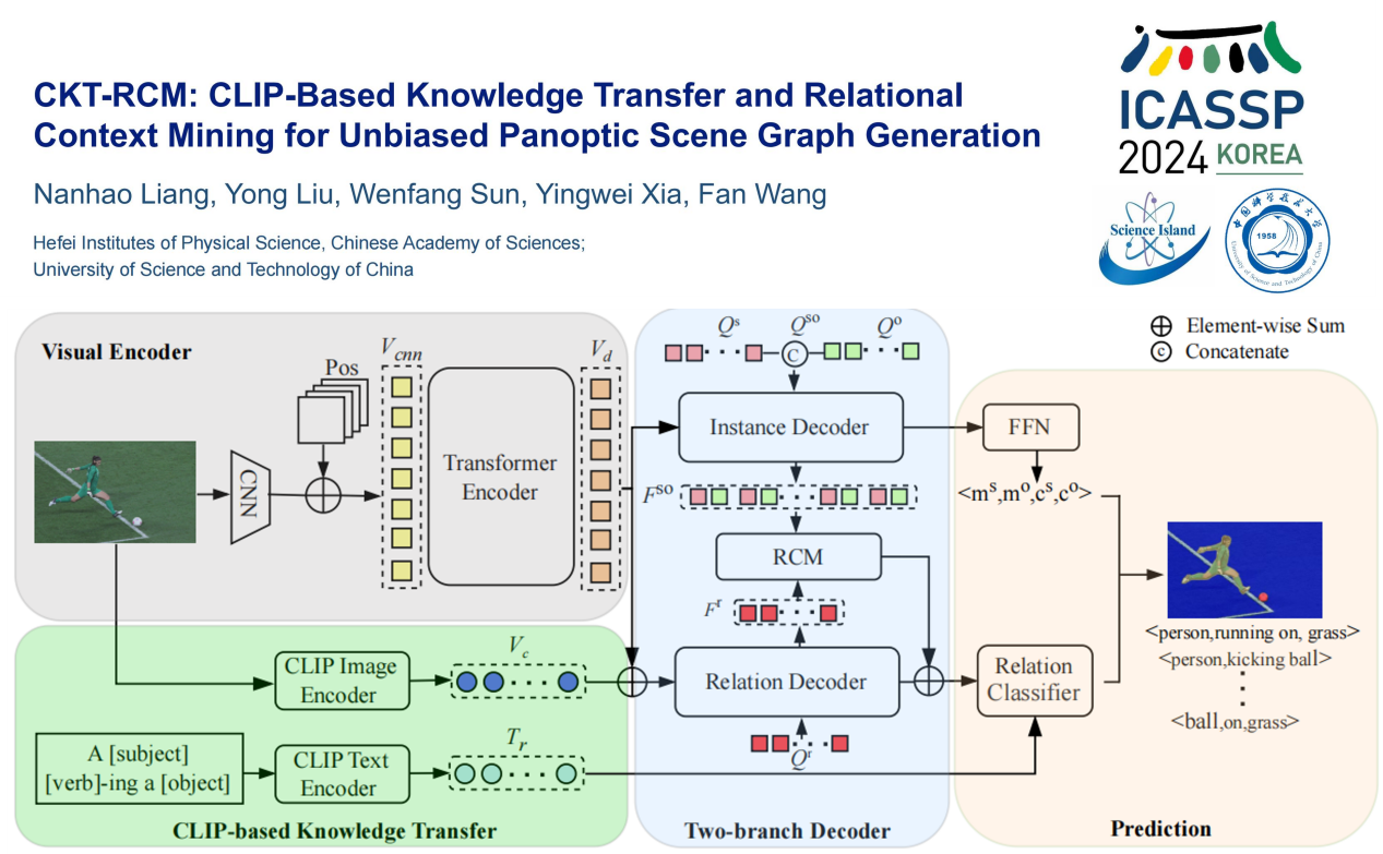 They developed this network framework CKT-RCM. Based on the pre-trained vision-language model CLIP, CKT-RCM facilitates relationship inference during PSG processes. It integrates a cross-attention mechanism to extract relational context, ensuring a balance between value and quality in relational predictions.