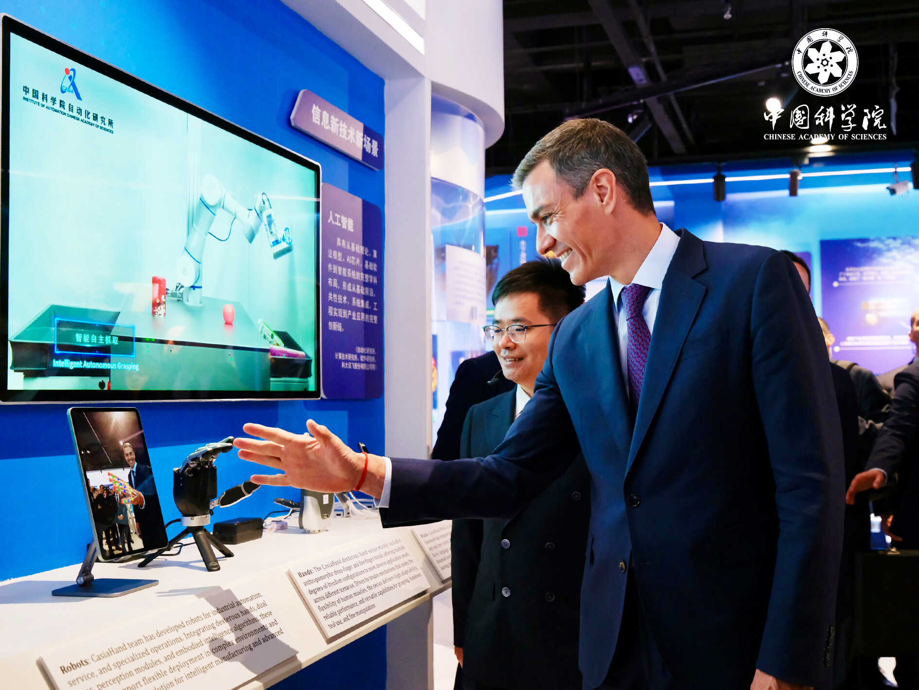 Sánchez visits an exhibition showcasing China's latest sci-tech achievements. (Image by CAS)