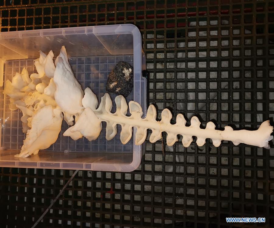 Photo taken on June 15, 2019 shows the sponge collected by Discovery, a remote operated vehicle aboard KEXUE, in western Pacific Ocean in a recent dive. China's research vessel KEXUE (Science) finished its investigation of seamounts in the west of the Pacific Ocean and started to sail back on Saturday evening. KEXUE is scheduled to arrive in Xiamen of China's Fujian Province on June 23. (Xinhua/Zhang Xudong)