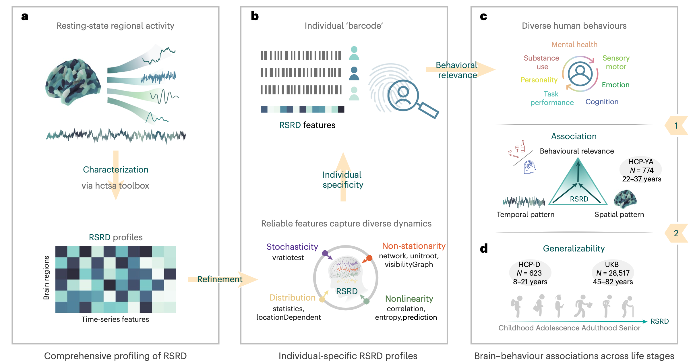 In this stuy, the researchers systematically evaluated the role and generalizability of regional dynamic properties in explaining individual differences and brain-behavior associations. They developed a robust and individually distinctive functional representation framework, termed Resting-State Regional Dynamics (RSRD), and demonstrated that RSRD-based brain-behavior association patterns generalize across independent cohorts spanning the human lifespan (ages eight to 82).