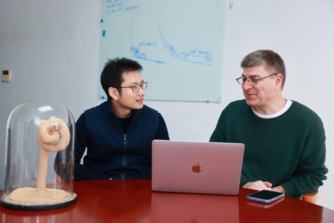 Prof. Jeremy Murray (right) discusses work with Prof. ZHANG Yu (left). (Image by CEMPS)