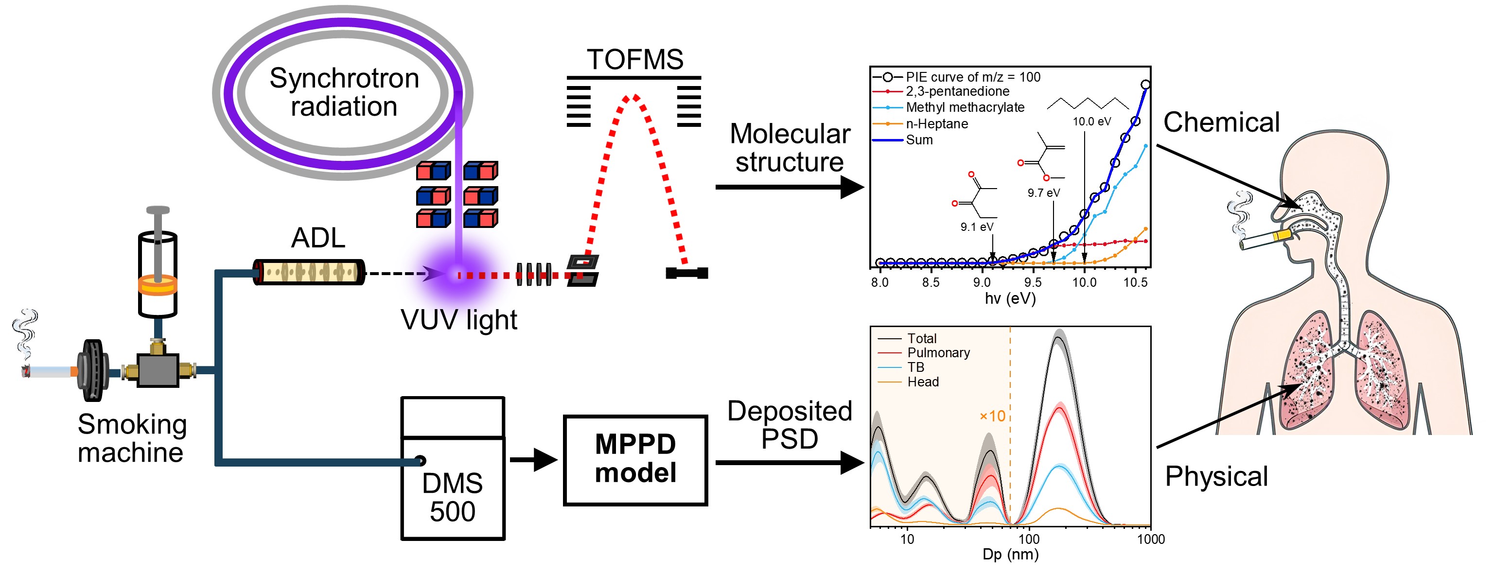 To reveal the chemical composition of cigarette smoke more fully, the researchers combined their Vacuum Ultraviolet Photoionization Aerosol Mass Spectrometer, which they developed themselves, with the Hefei Synchrotron Radiation Facility. This combination enabled them to identify and differentiate between different structures of toxic molecules in cigarette smoke for the first time.