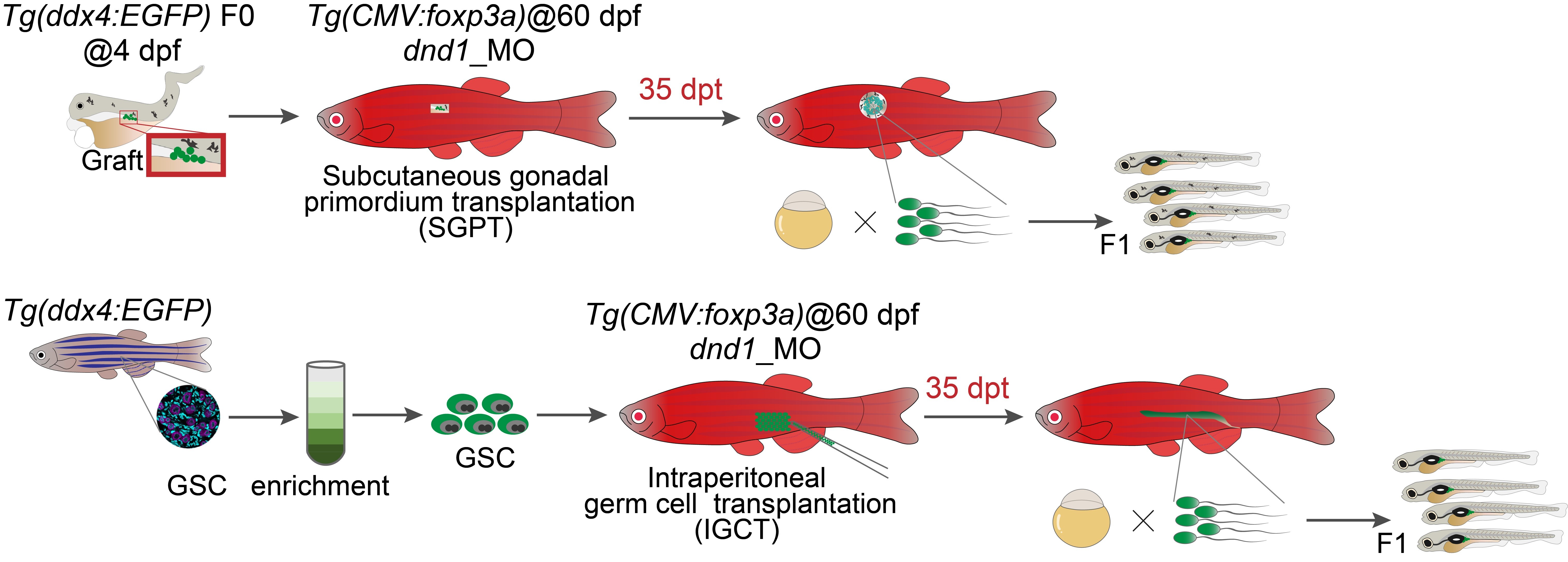 In summary, foxp3a overexpression reprograms the host immune microenvironment, surmounts allograft rejection, and enables ultra-fast maturation of donor-derived gametes. This study lays an immunoregulatory foundation for the large-scale application of allogeneic surrogate reproduction and provides a novel strategy for the rapid generation of genetically modified lines in both model and economically valuable species.