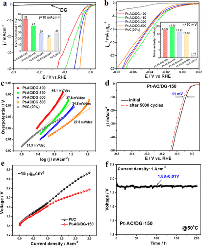 The prepared Pt-AC/DG catalysts exhibited superb electrocatalytic performance for the hydrogen evolution reaction (HER) with a greatly enhanced Pt utilization efficiency and stability with significantly reduced Pt usage compared with the use of commercial Pt/C catalysts.