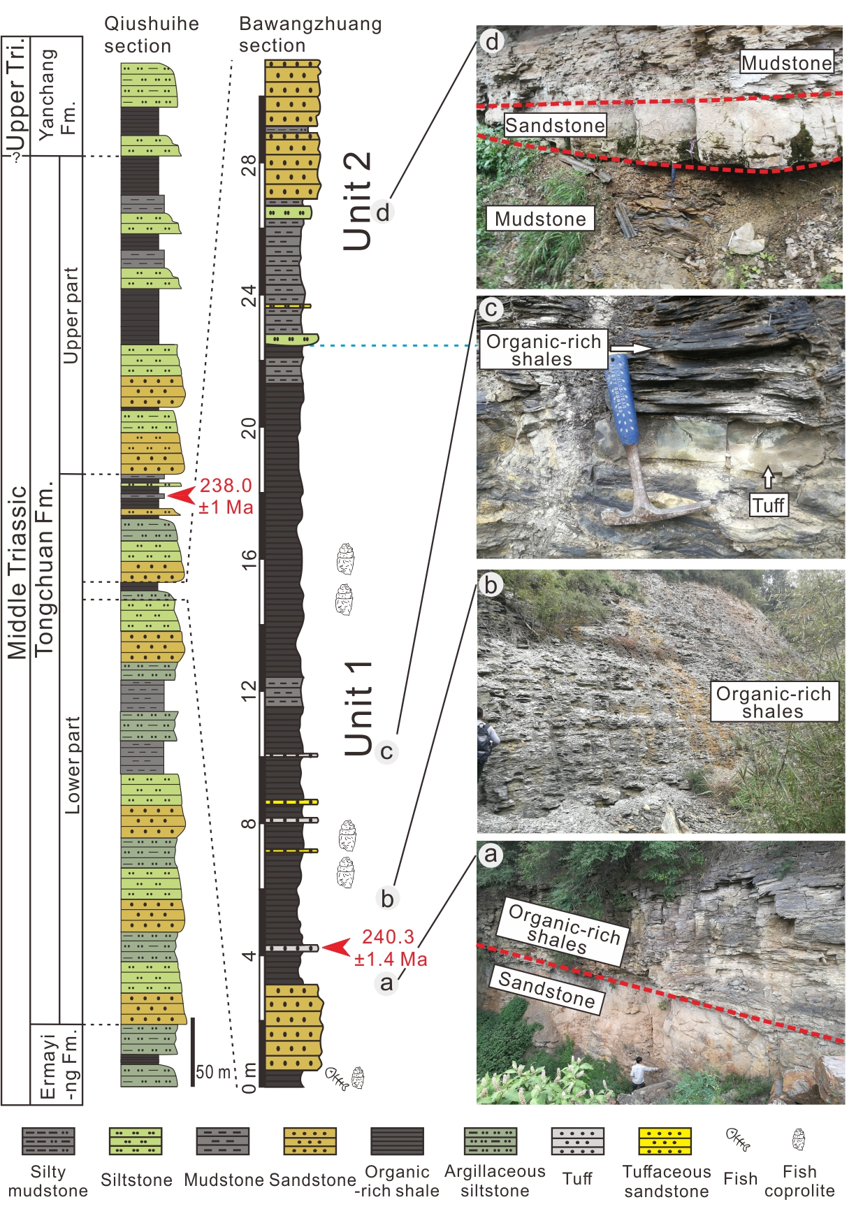 Fig. 1 Field photographs of the Bawangzhaung section (Image by NIGPAS)