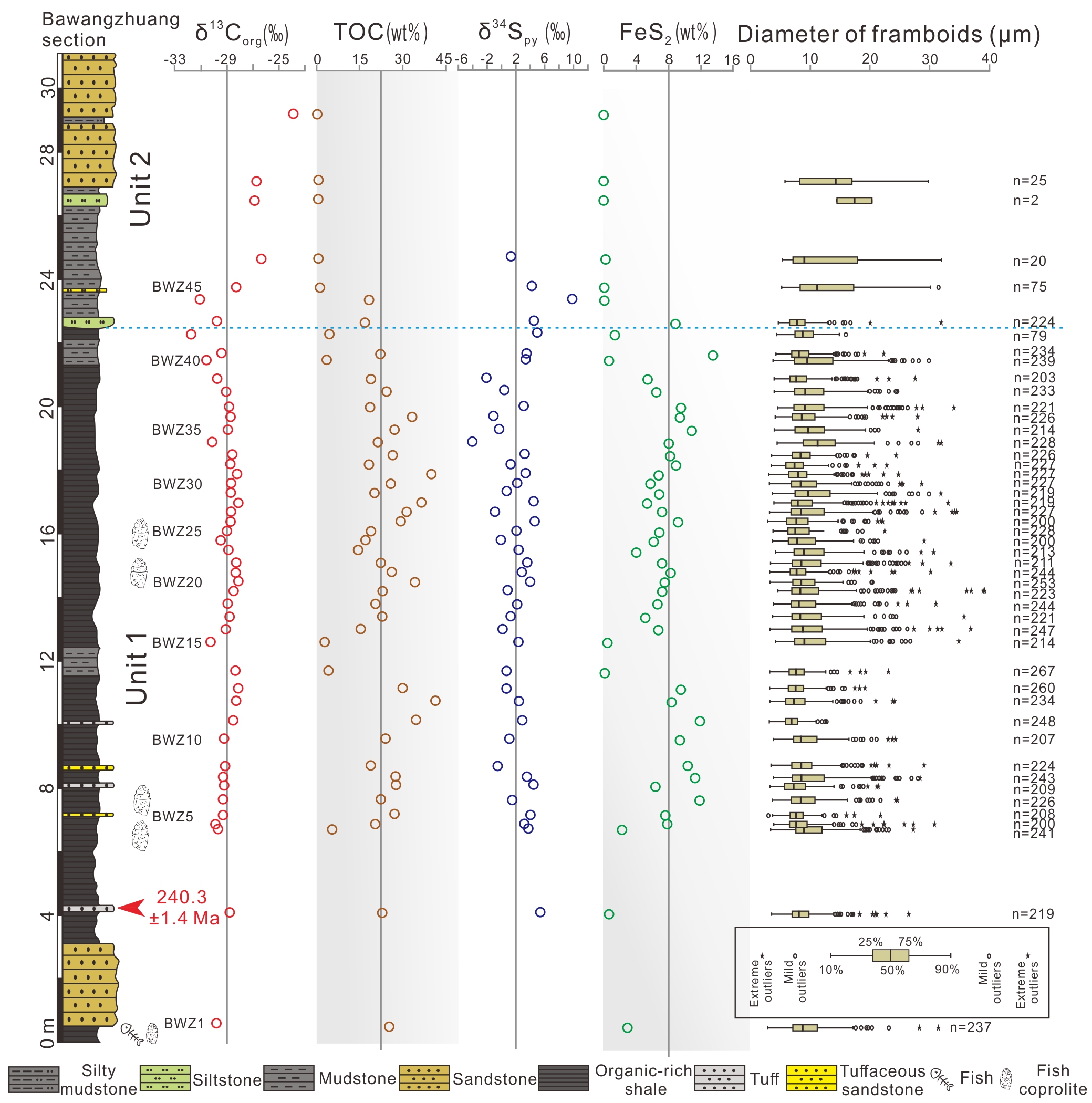 The researchers conducted high-resolution organic carbon (δ13Corg) and pyrite sulphur (δ34Spy) isotope analysis, TOC/pyrite contents and pyrite morphology investigation, and framboidal pyrite size measurements in the Tongchuan shales.