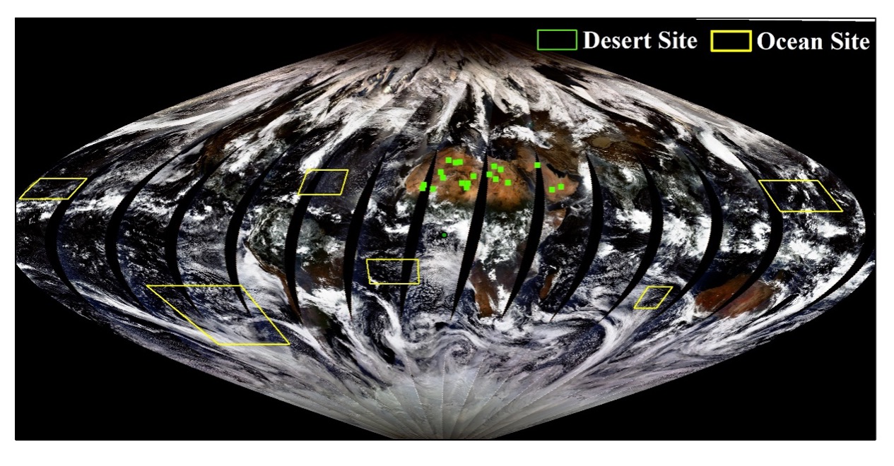 Fig. 1 Major oceanic and desertic sites for the in-orbit radiometric calibration of PCF onboard GaoFen-5 (02). (Image by AIR)