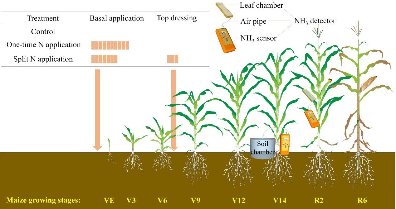 A research team from the Hefei Institutes of Physical Science of the Chinese Academy of Sciences has revealed that a one-time nitrogen application, a labor-saving practice favored by many farmers, increases both soil and canopy ammonia emissions in maize fields, while reducing grain yield and nitrogen use efficiency.