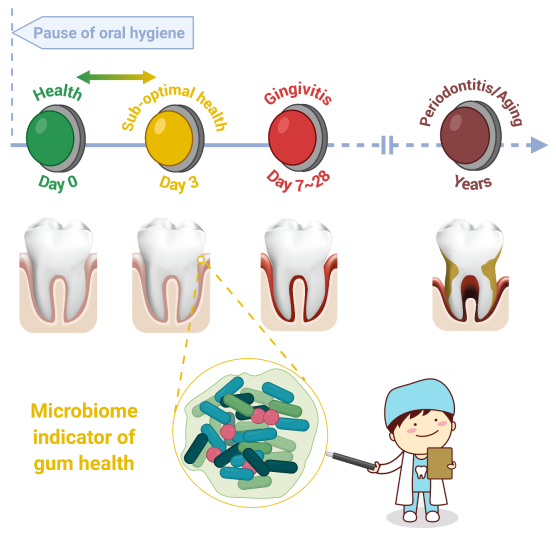 Longitudinal multi-omics and microbiome meta-analysis identify an asymptomatic gingival state that links gingivitis, periodontitis and aging. (Image by LIU Yang)