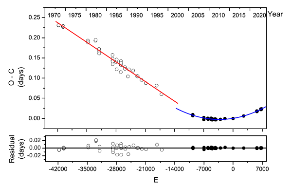 Period variations of close binary V752 Centaurus (Image by ZHOU Xiao)