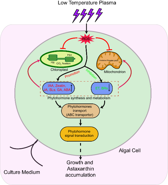In this work, HUANG and his colleagues explored the optimal conditions of low-temperature plasma discharge on the growth and biomass of H. pluvialis by adjusting plasma treatment time.